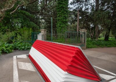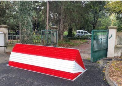 • Partie mobile traitée par galvanisation à chaud habillée d’une face avant souple évitant la déformation et risques de blocage du dispositif